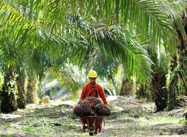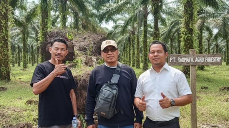 Menampilkan kegiatan perkebunan kelapa sawit berkelanjutan.